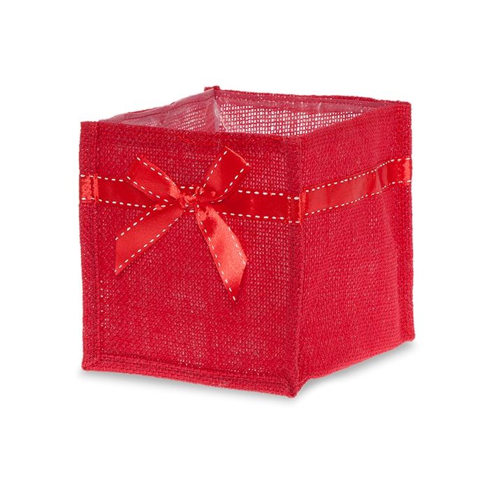 Red Jute Square Utility Bag with Red Bow - Small 5in