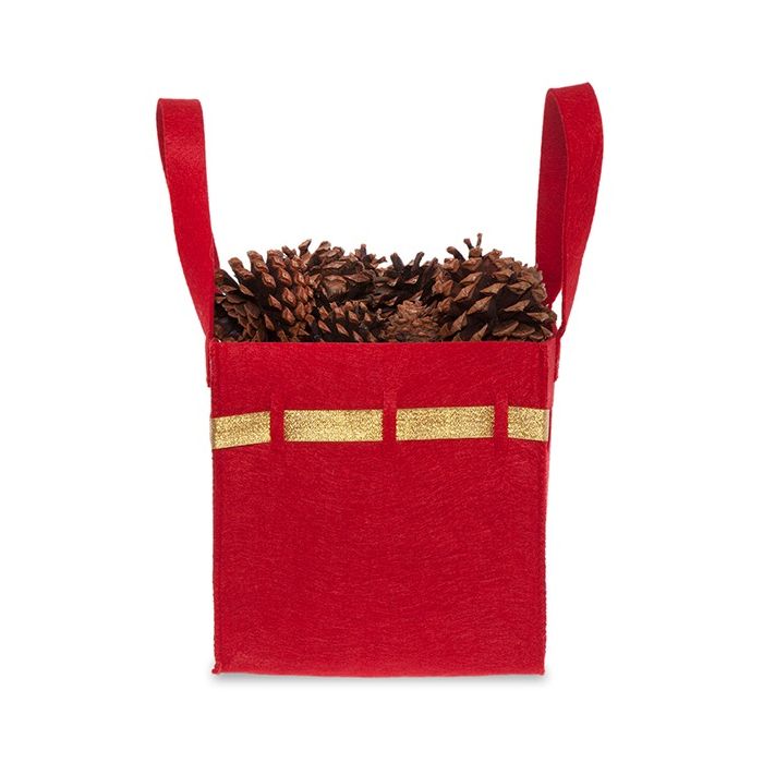 Red Square Felt Handle Bag with Gold Trim - Large 8in