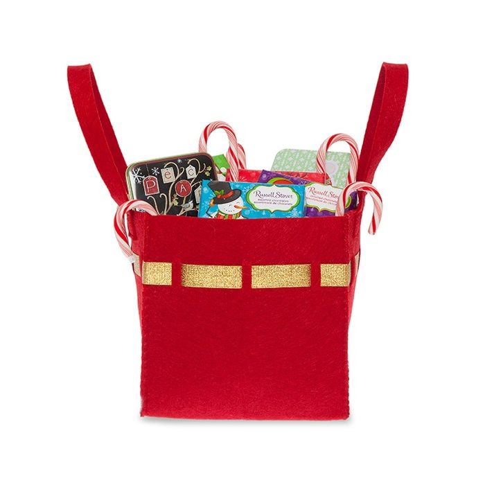 Red Square Felt Handle Bag with Gold Trim - Small 6in